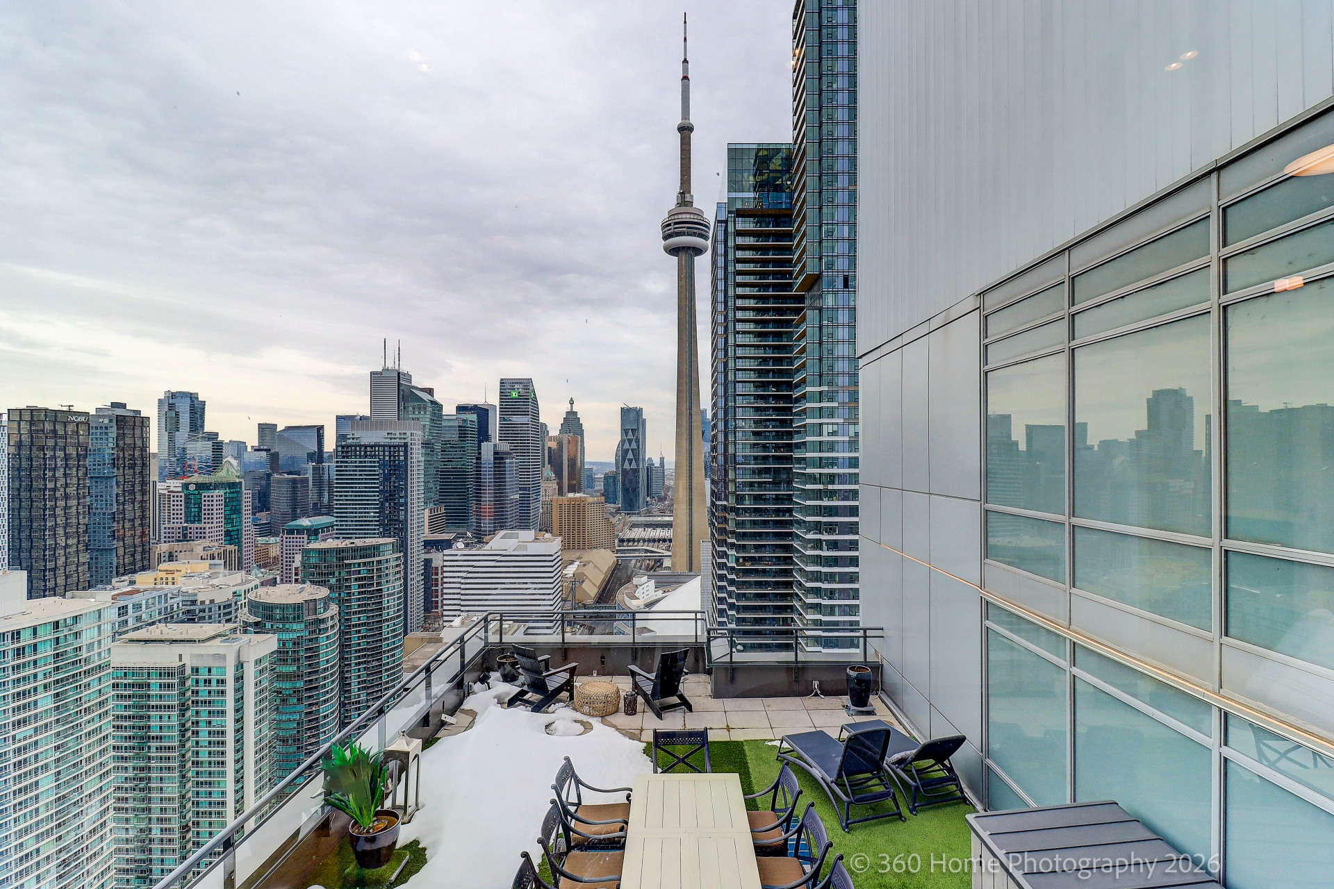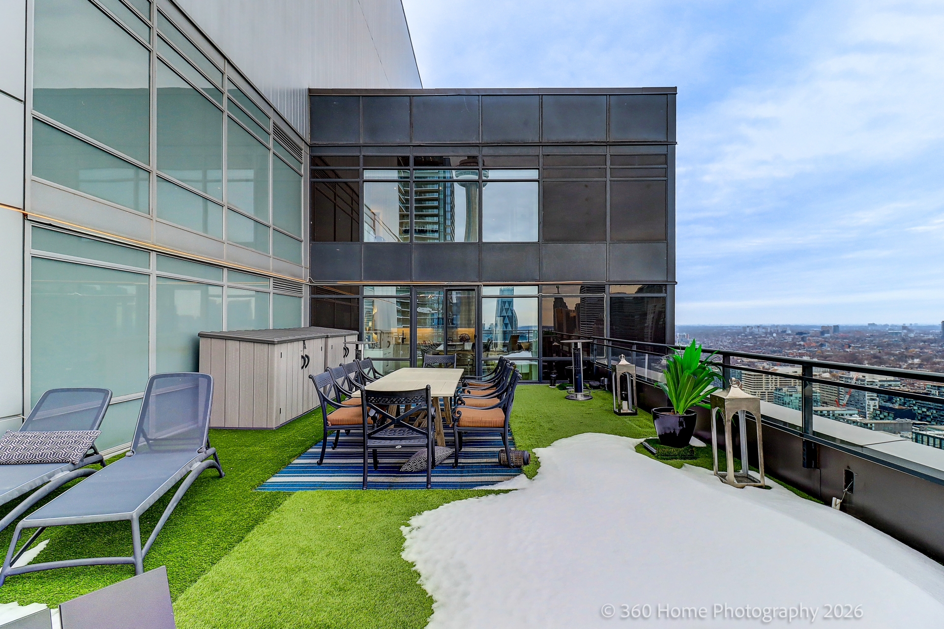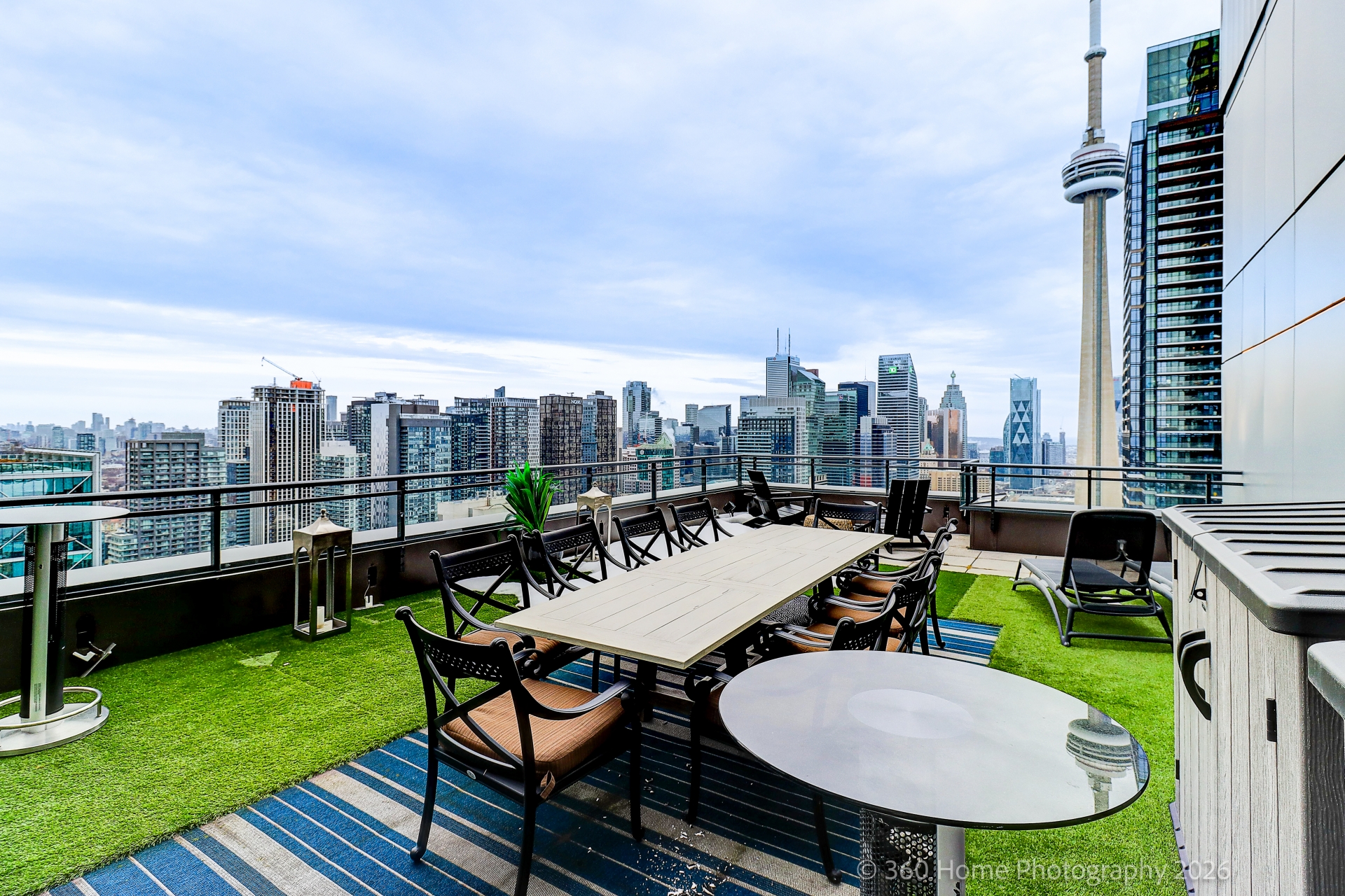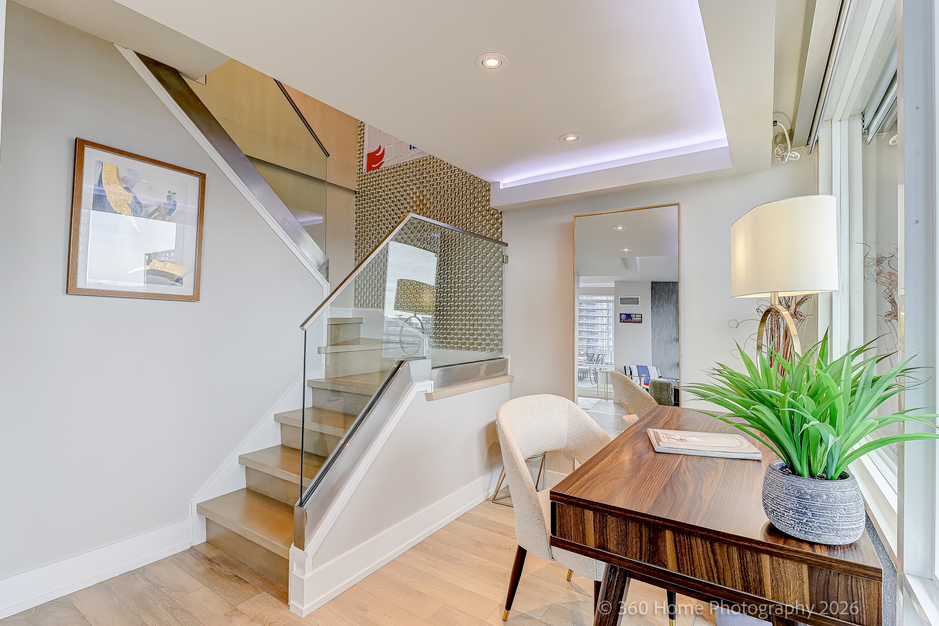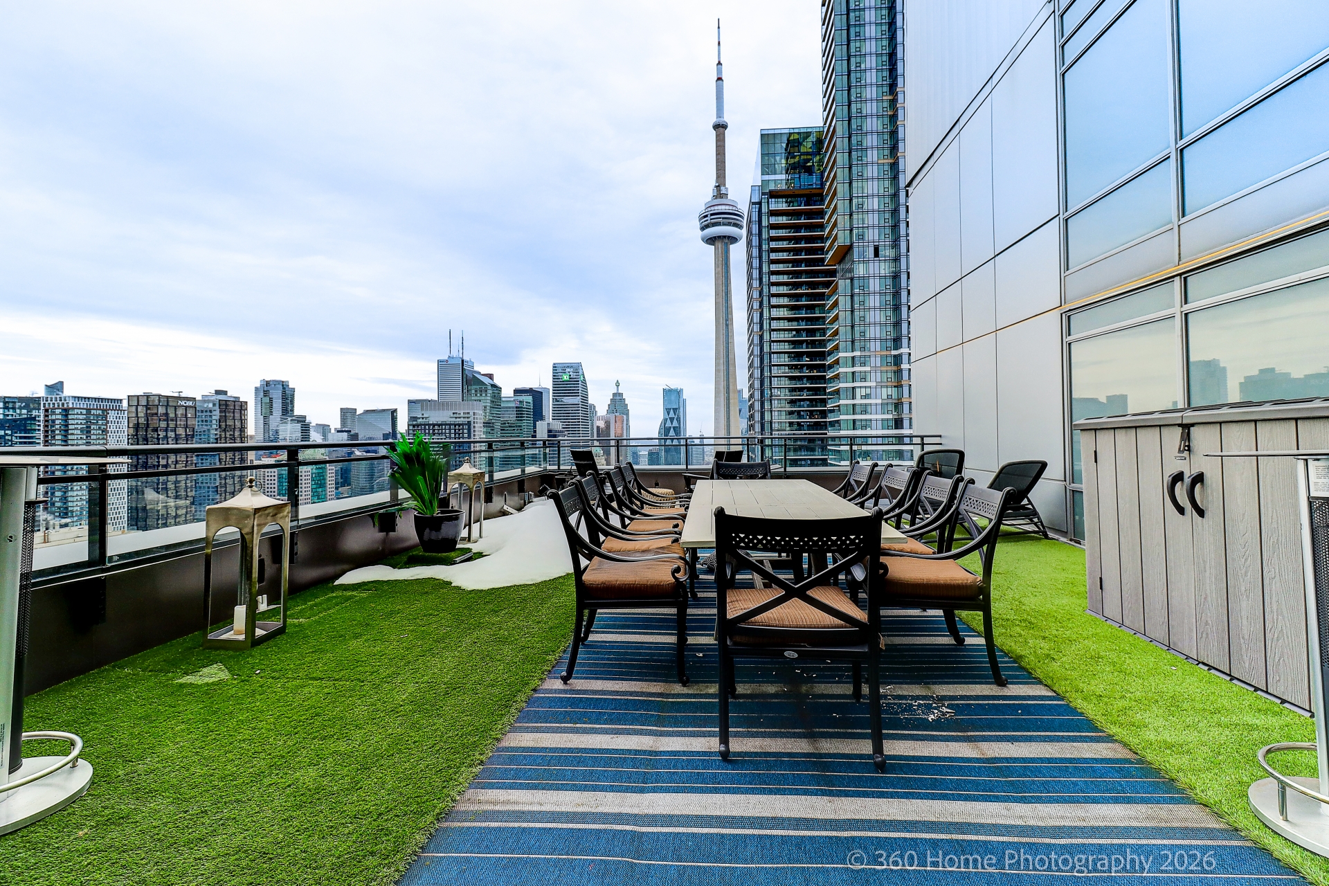 Imagine living in a stunning two-level penthouse in Oshawa North with a massive 777 sqft private terrace that lets you enjoy fantastic sunset views and host guests in style. You’ll feel like a star in this Terrace that shows you the city and the lake from every angle. You’ll also have a high-rise lobby and three fast elevators. Plus, there are two parking spots and a locker beside them. The bedrooms upstairs have full bathrooms with body jets, a rainfall shower, and a closet with a custom organizer. You’ll love the sleek design of the glass and steel staircase, the feature wall, the Ambient ceiling lighting, the Automated blinds, the Built-in electric fireplace, and the Built-in TV. The kitchen is a dream with Calcutta Quartz backsplash and countertop, custom cabinetry, and Full-size stainless steel appliances. And you’ll have access to these excellent amenities: